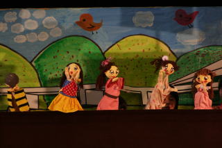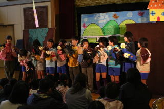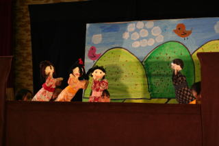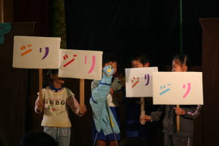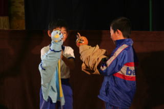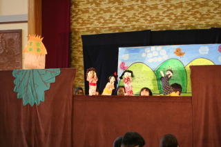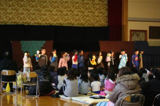 人形劇クラブは4人(3年生1人、4年生3人) それぞれお話の大事な役をしっかり演じました