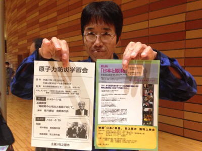 牧之原市危機管理課主催による「原子力防災学習会」 が行われました チラシPDF 第一部は 福島県南相馬市の現況 桜井南相馬市長 第二部は 桜井市長と西原茂樹牧之原市長の対談 でした ショーゴさんは 3月7日に上映する「日本と原発」の映画のチラシを 配布に行きました 「日本と原発」牧之原会場チラシ こちら 牧之原市の後援をいただきました |