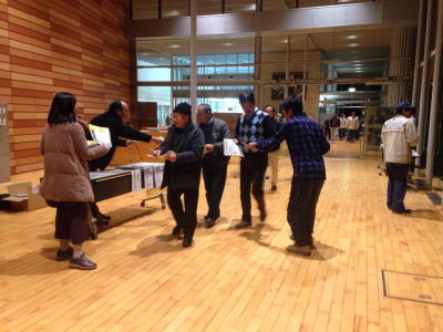 | 配布しているのはロビーの中 受付より中での配布は3.11以前では考えられません さすが牧之原市! | ||