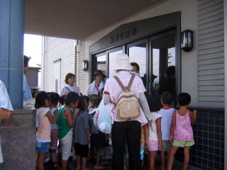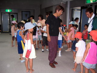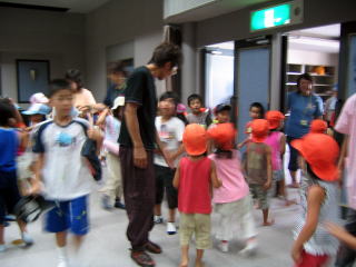 すごくたくさんの園児さんです みんなウサ吉・カメ男に大きな声援をくれました