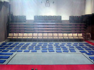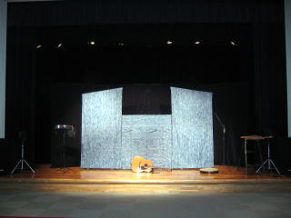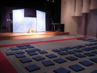 照明がきれいに当たっています 今回は可動式の椅子は使わず、平土間の状態で客席をつくりました