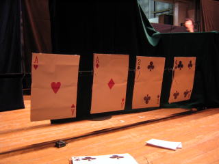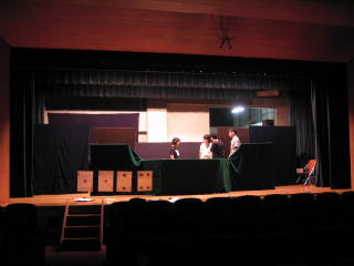 | 前日の準備 この舞台で6劇団が入れ替え上演です 当日スムーズに進行できるよう打ち合わせです |