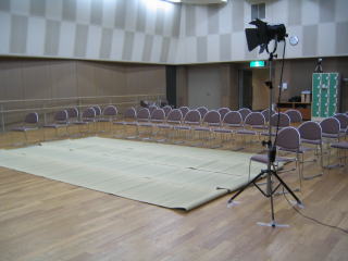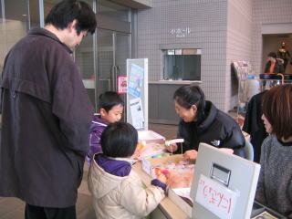 | ロビーでは次に上演する劇団の紹介をしてくれています 人形劇団なみさんはここでも活躍! |