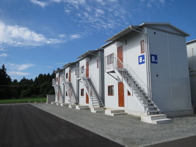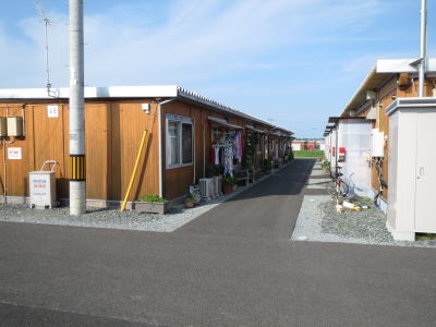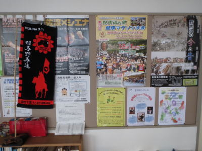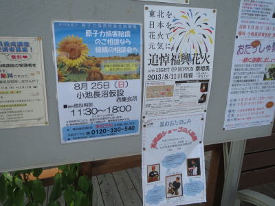 | 仮設住宅の掲示板には催し物のチラシがいっぱいでした。 |