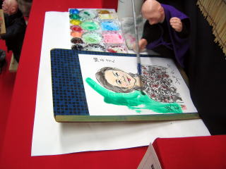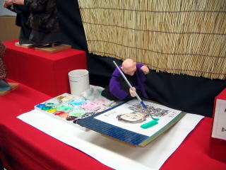 | 下絵を描く笑吉さん モデルさんに挨拶です | ||