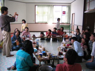 | 終演後の打ち上げ交流です | 公演ではやらなかった楽器を紹介 | |
