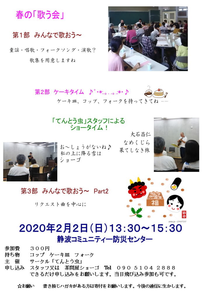 | 2019年2月9日 「歌う会」ゲスト尺八奏者 縄巻修巳氏 終了しました |