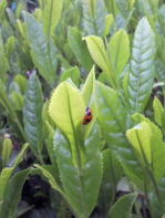 | てんとう虫は茶畑の中にたくさんいる益虫です |